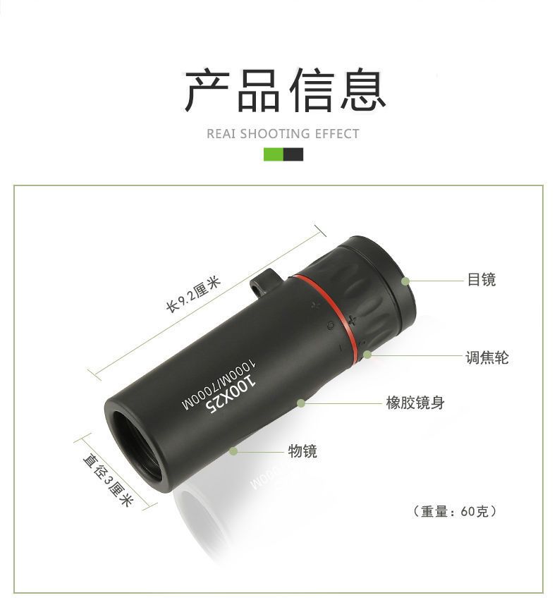 高清望远镜单筒高倍夜视穿墙成人微光非红外线手机拍照便携1000军