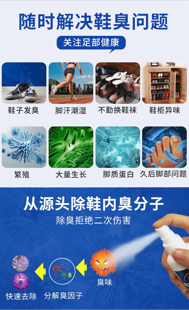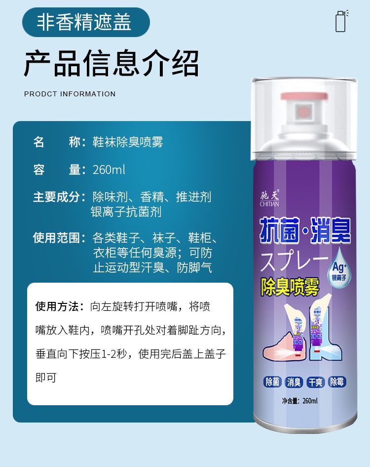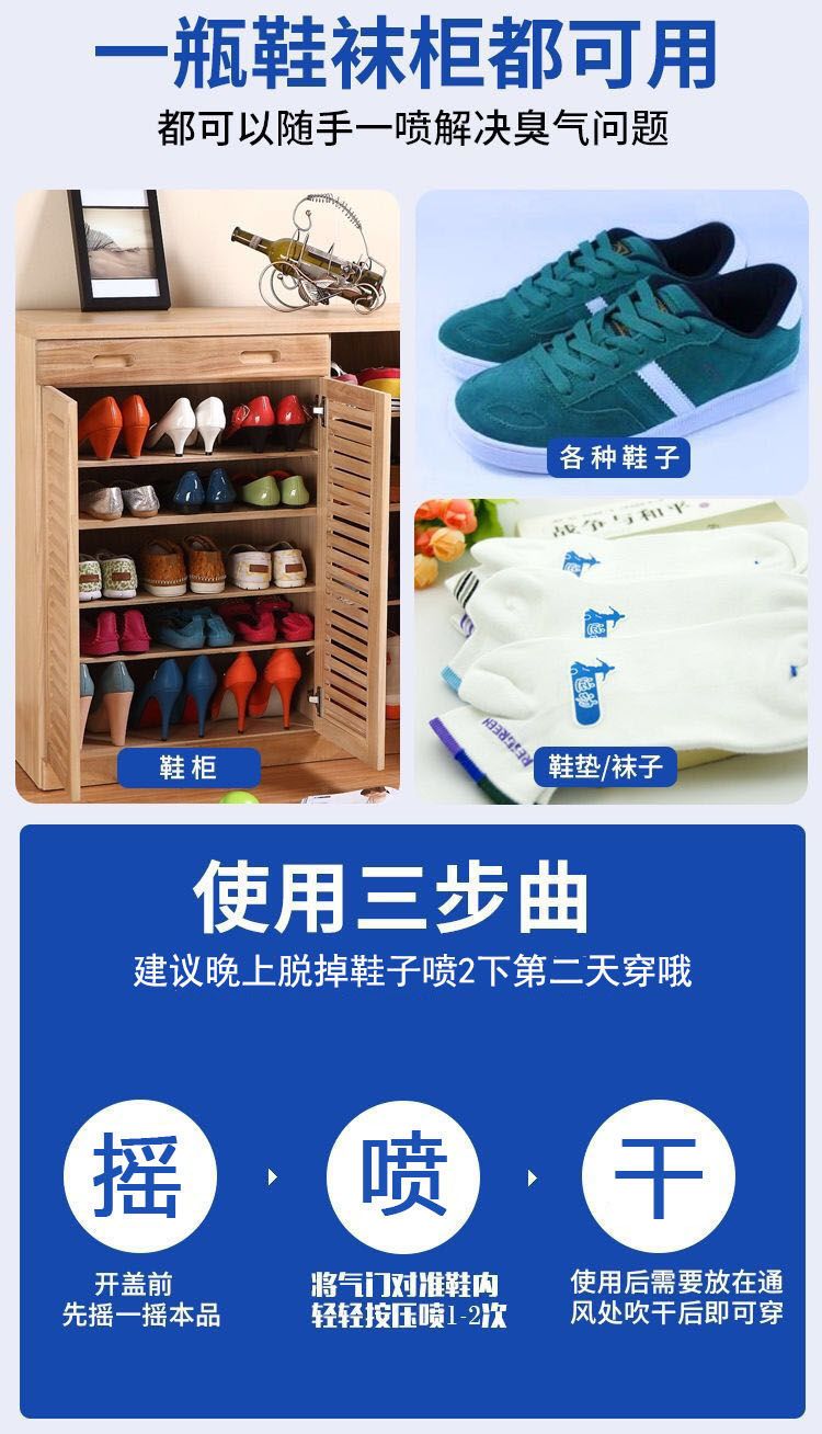 鞋子除臭喷雾剂防鞋袜臭脚臭脚汗去脚臭除臭鞋神器鞋柜除味除臭剂