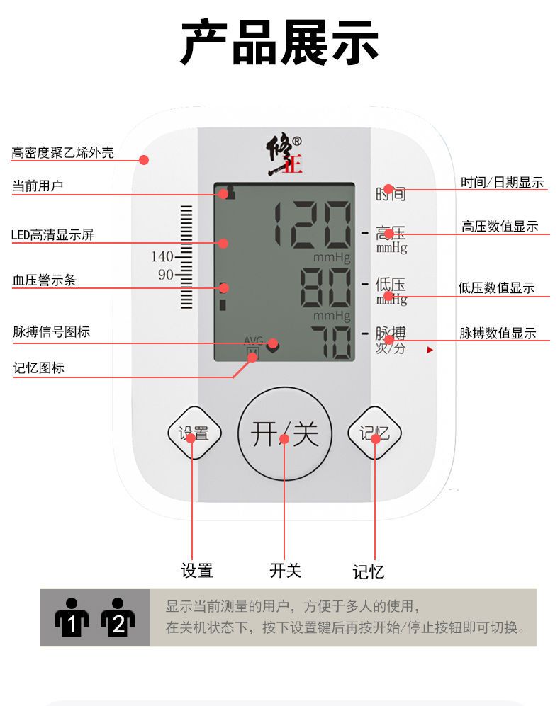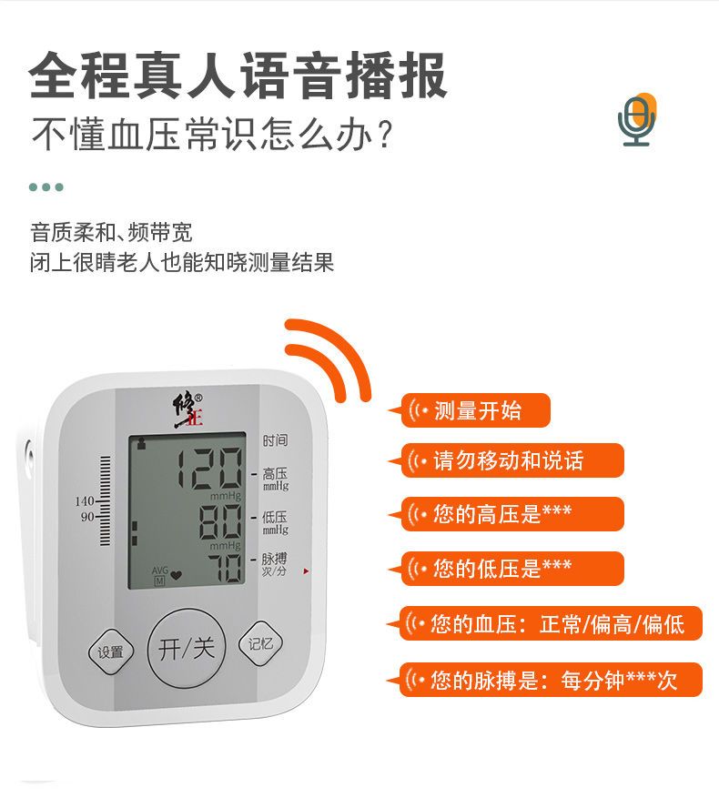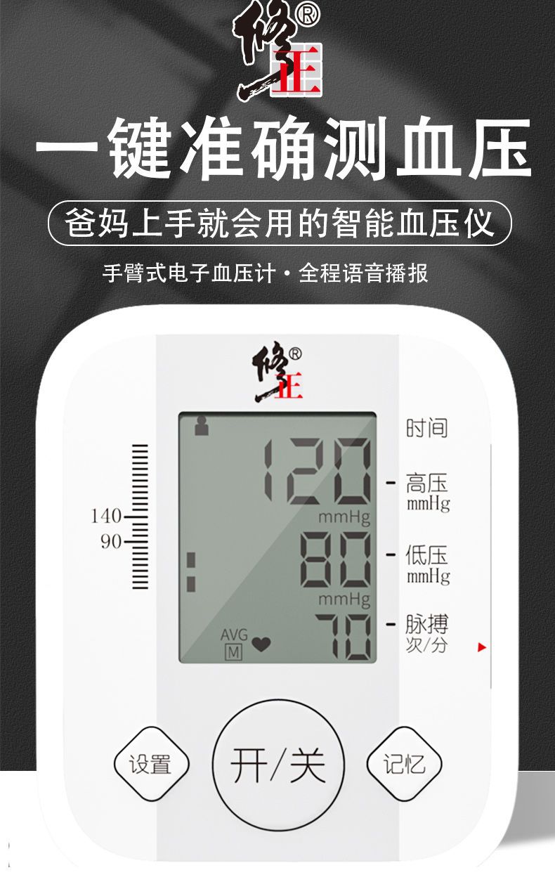 修正电子血压测量仪器医用血压计高精准度家用老人全自动语音播报