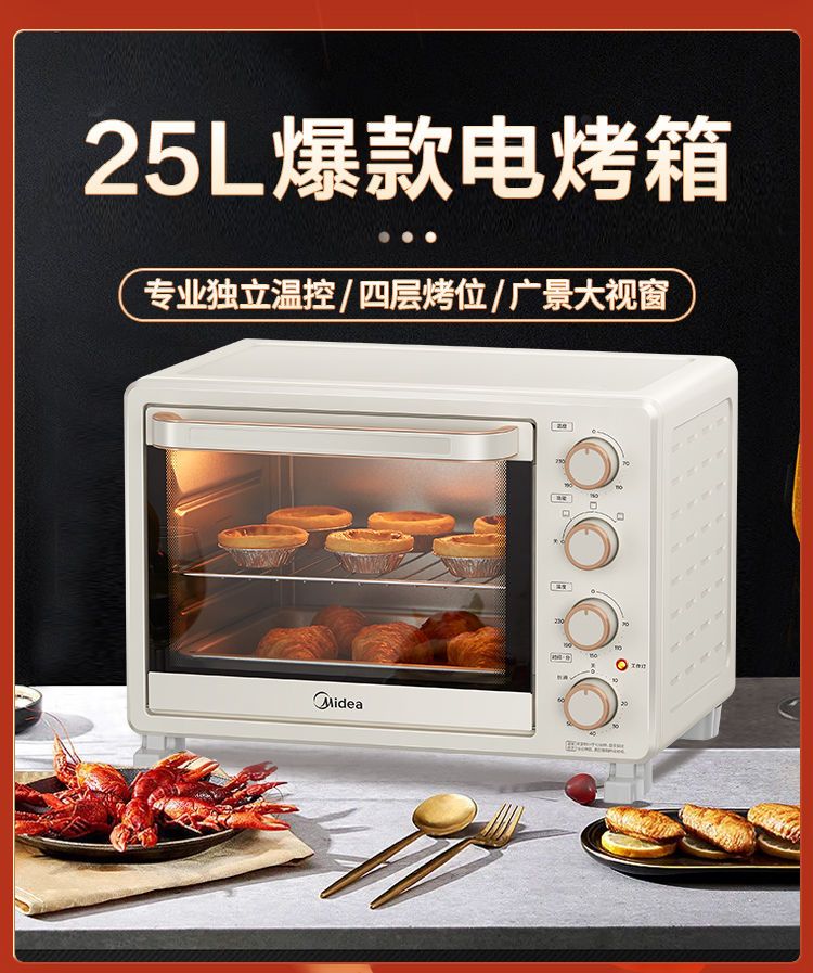 美的电烤箱家用烤箱多功能全自动25L大容量烘烤箱正品特价PT25X1