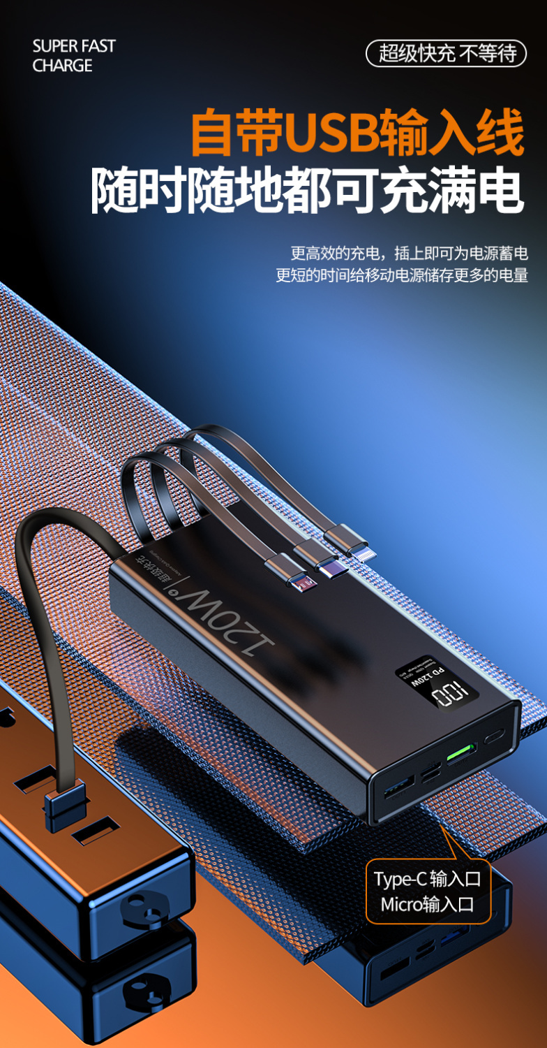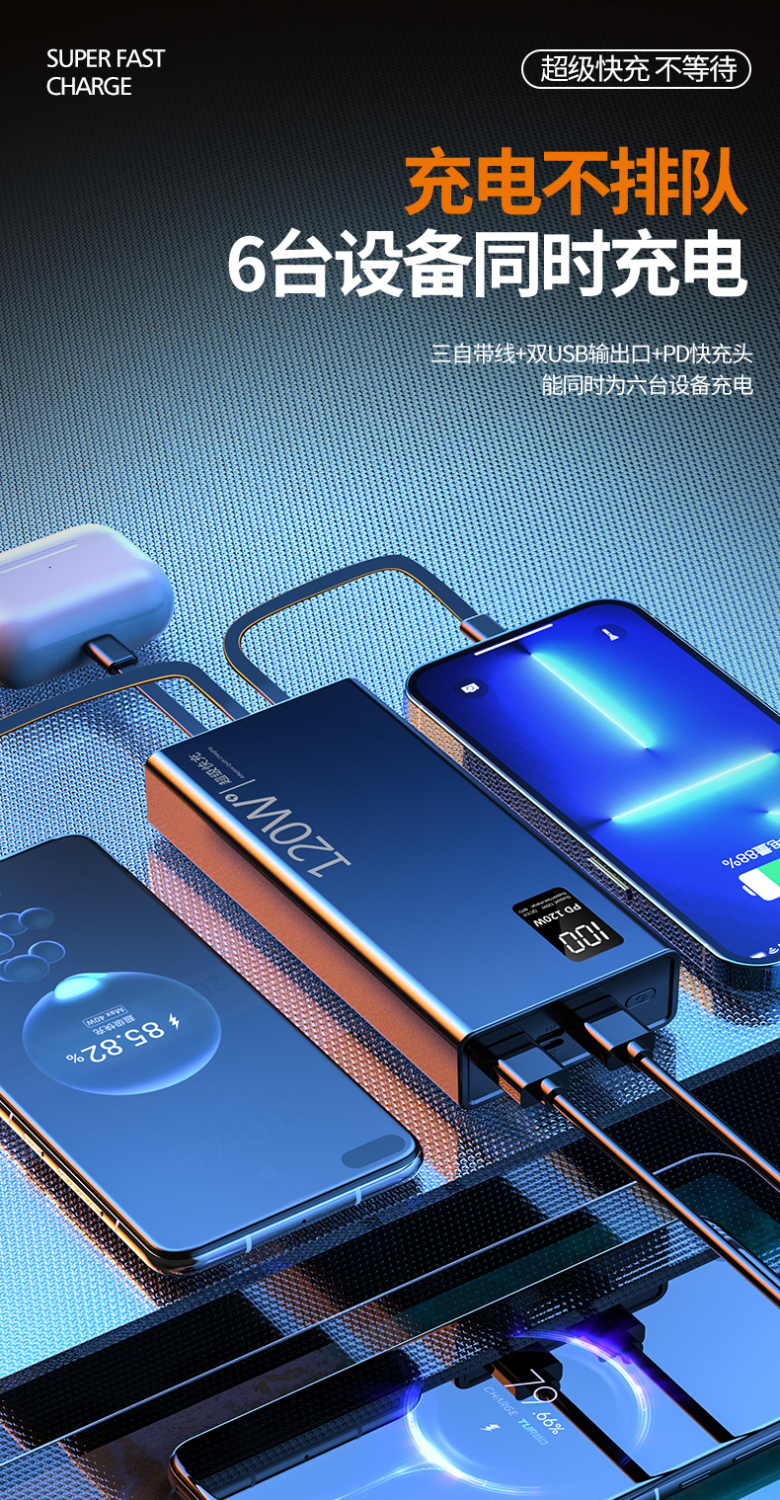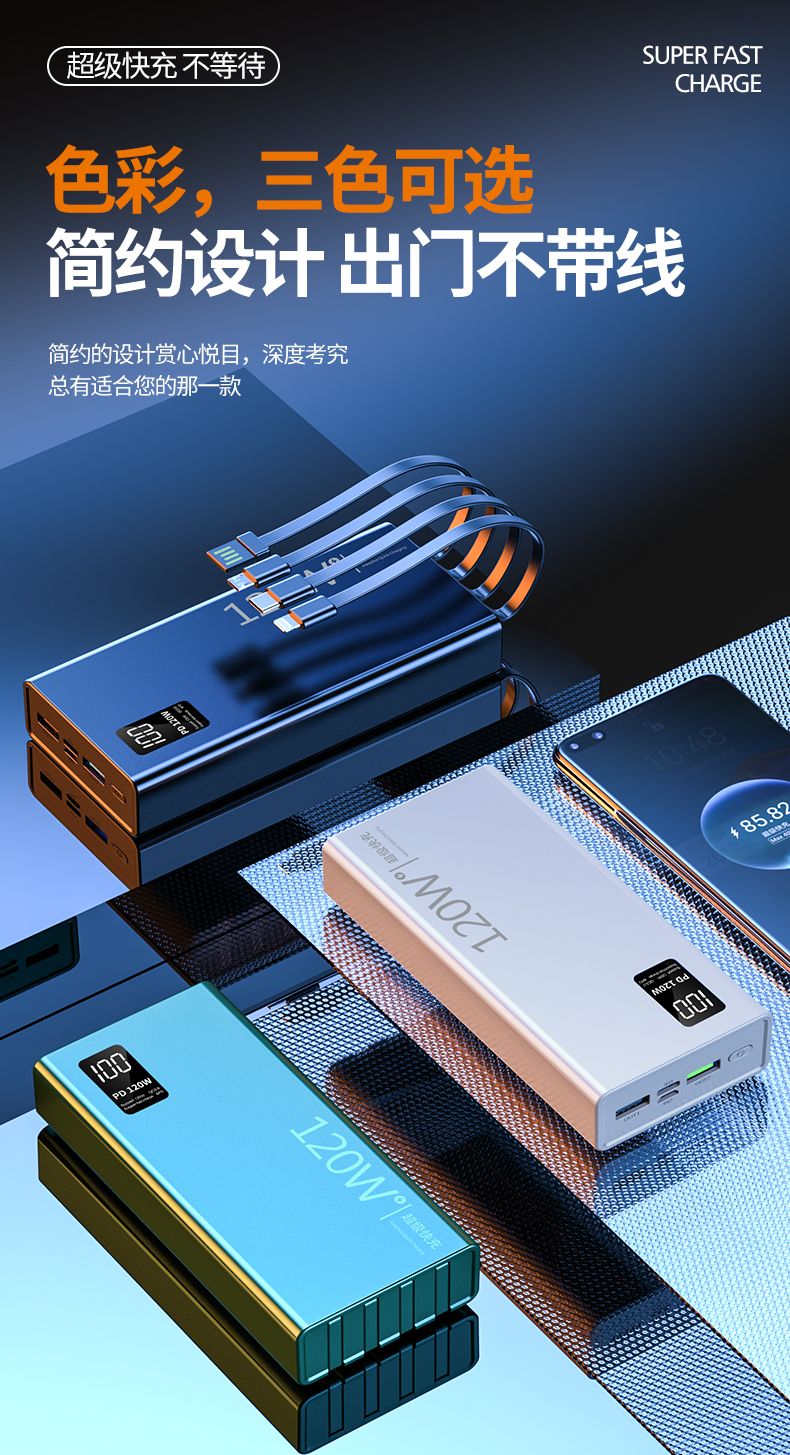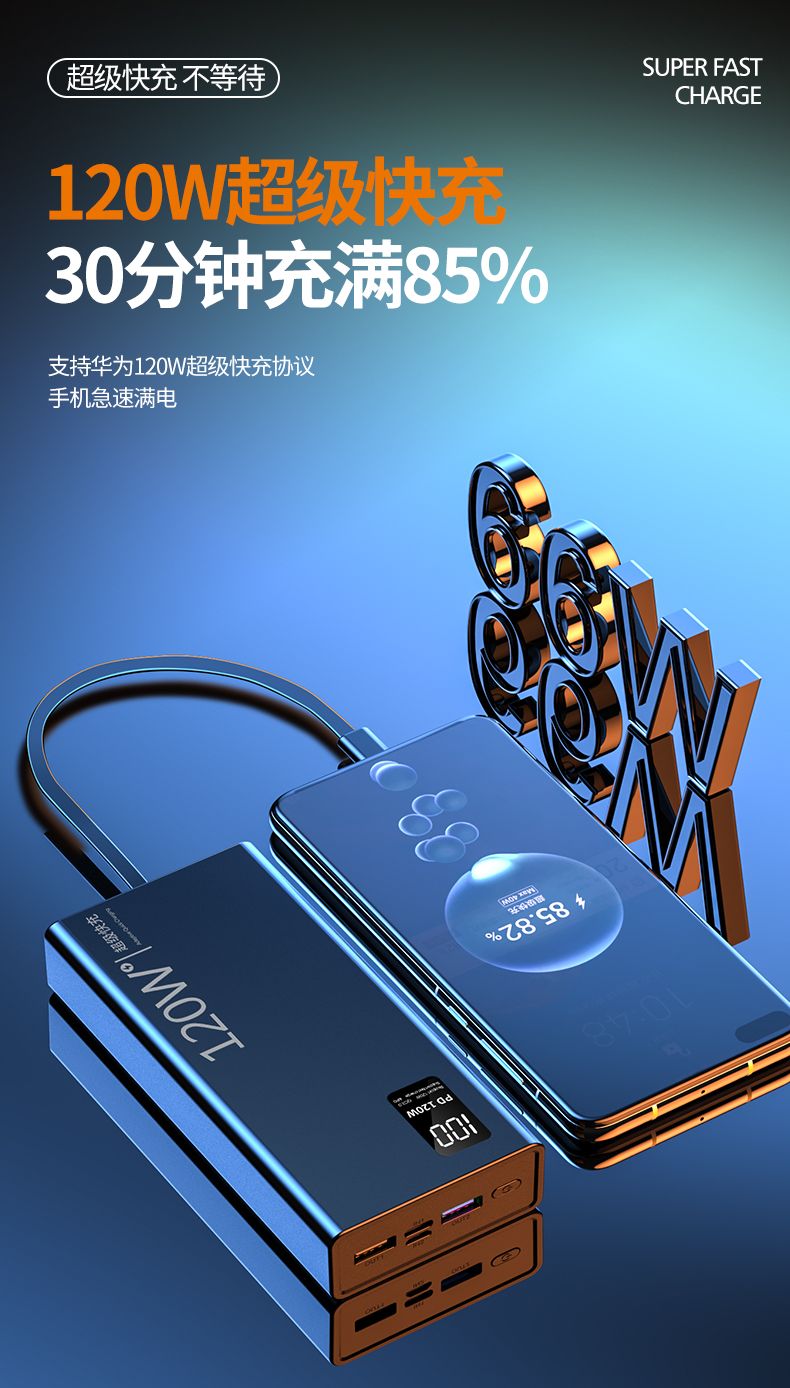 120W超级快充57000毫安充电宝大容量耐用闪充适用于苹果华为OPPO