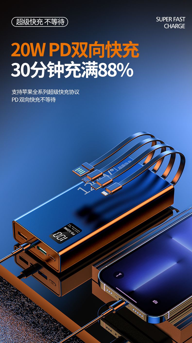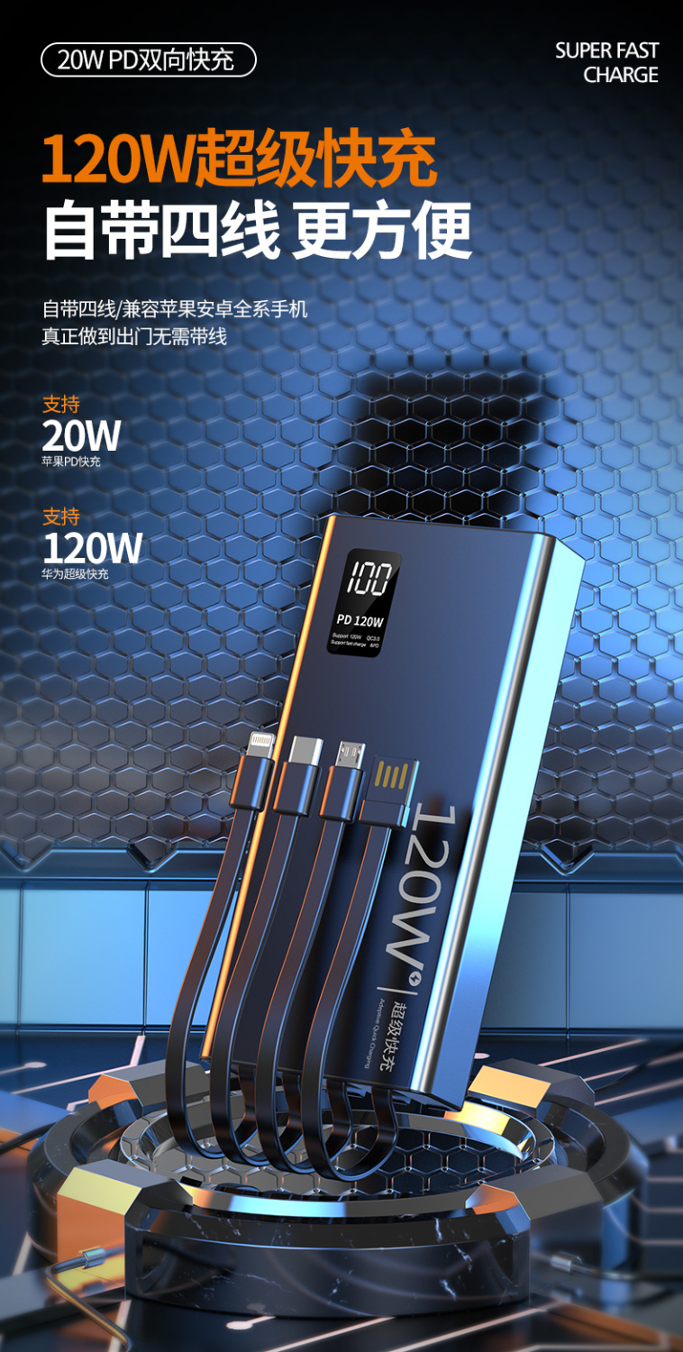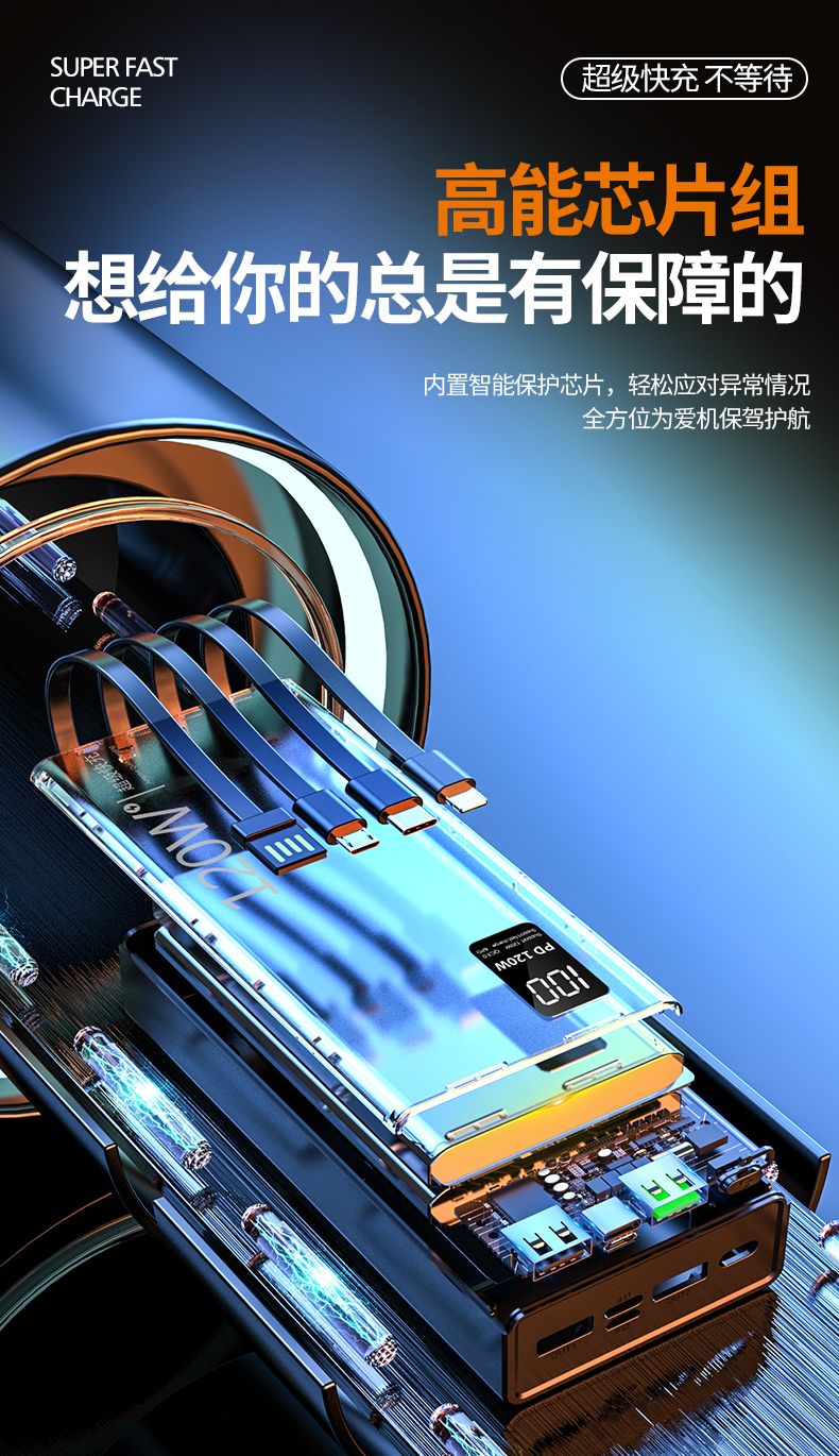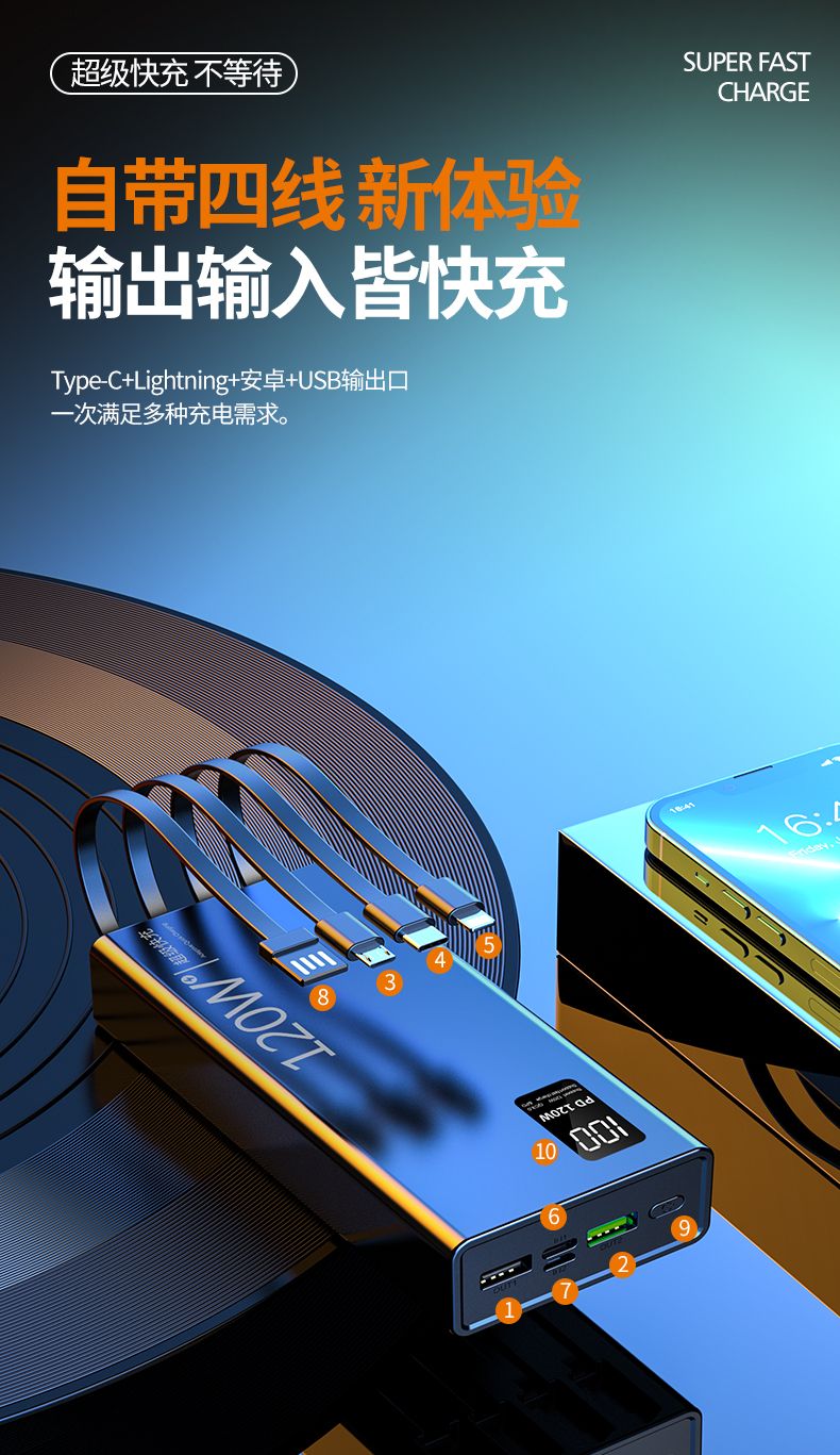 120W超级快充57000毫安充电宝大容量耐用闪充适用于苹果华为OPPO