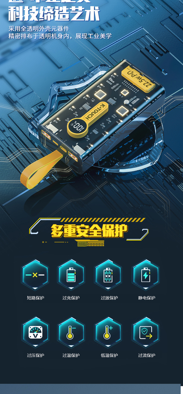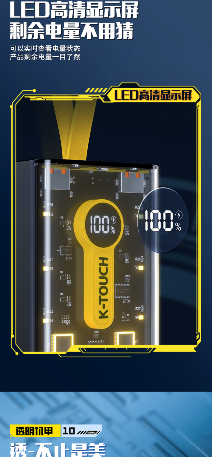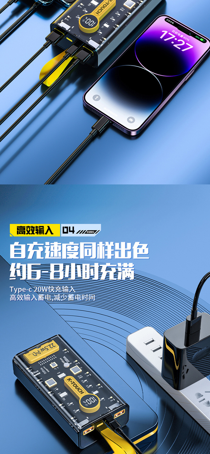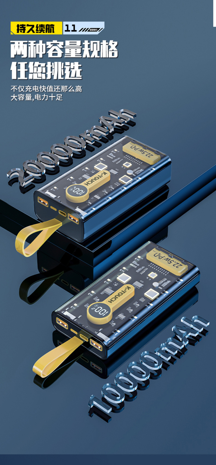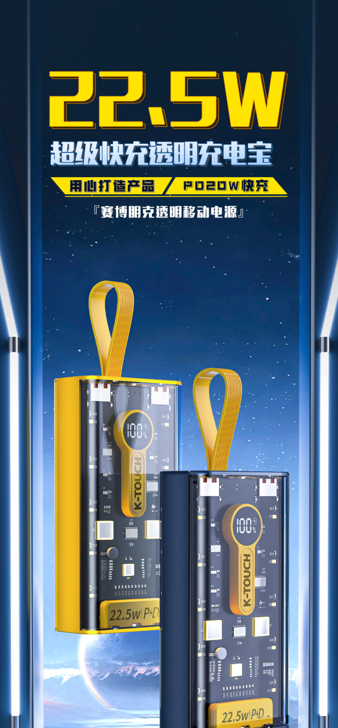 天语透明充电宝20000毫安22.5W超级快充大容量耐用便携移动电源