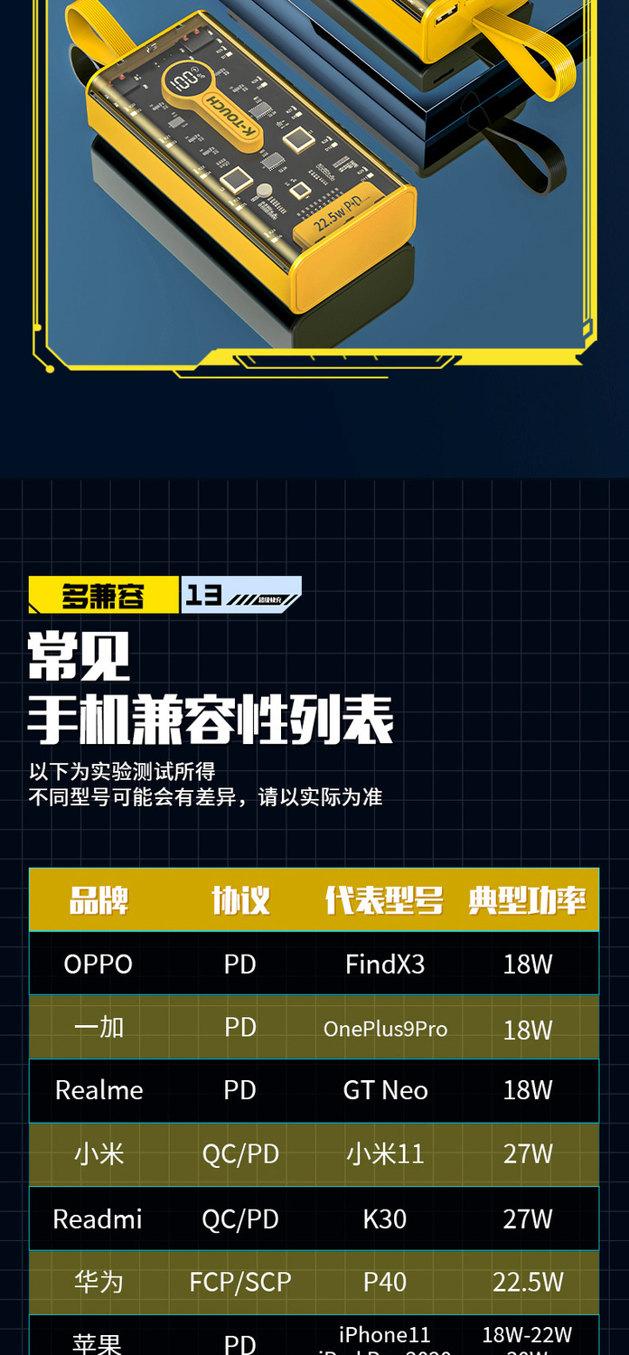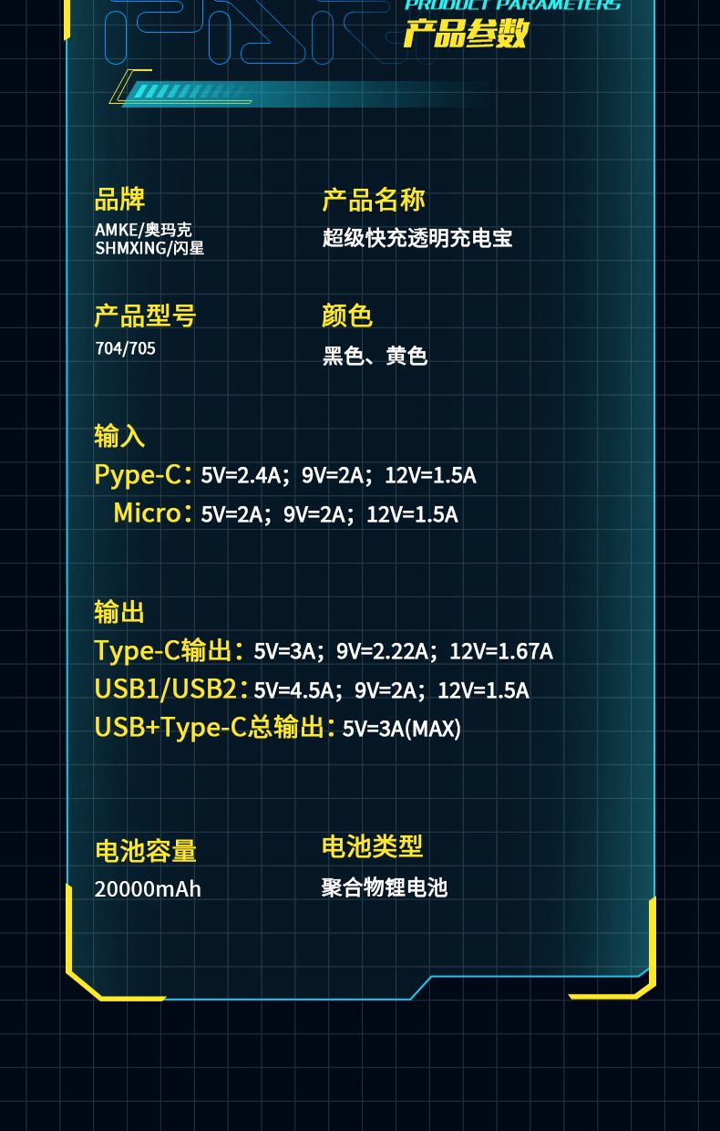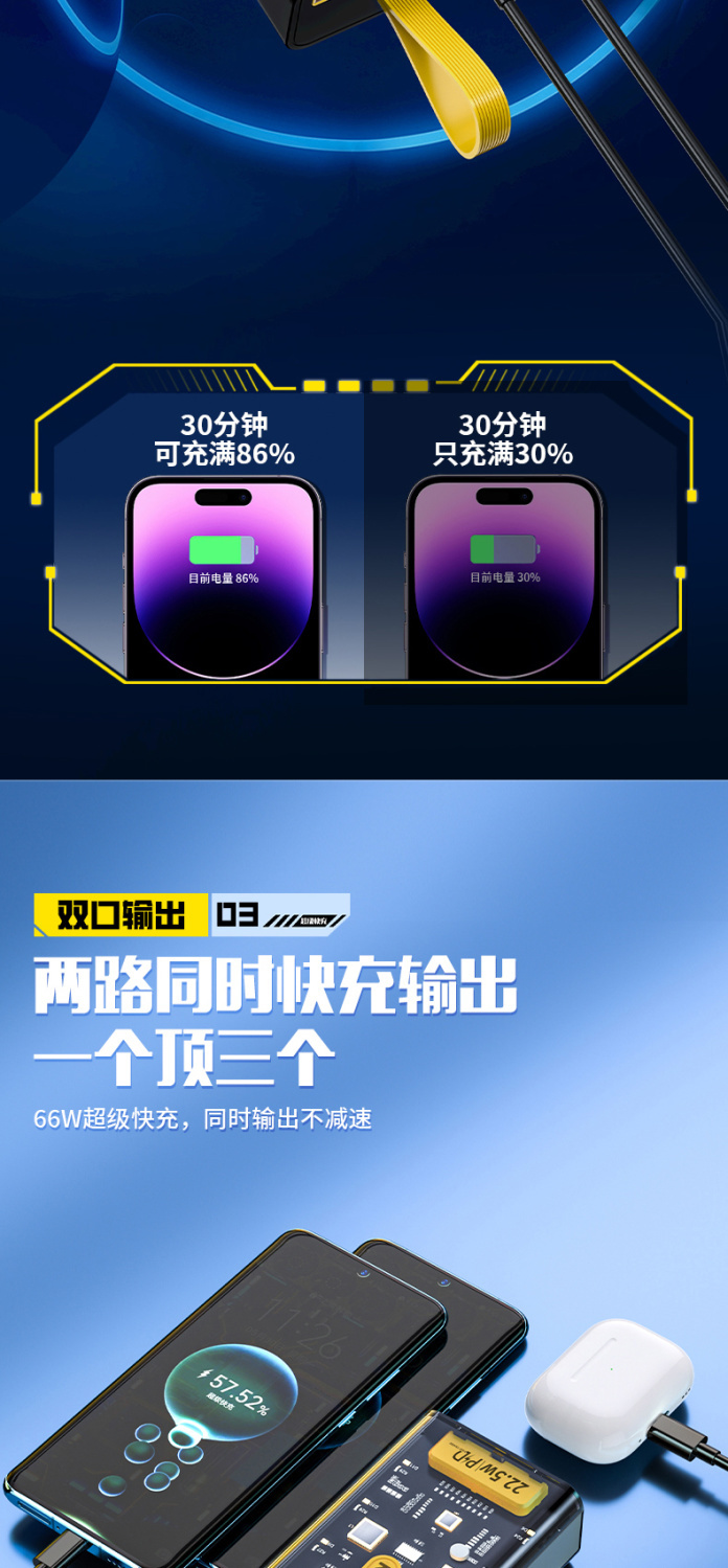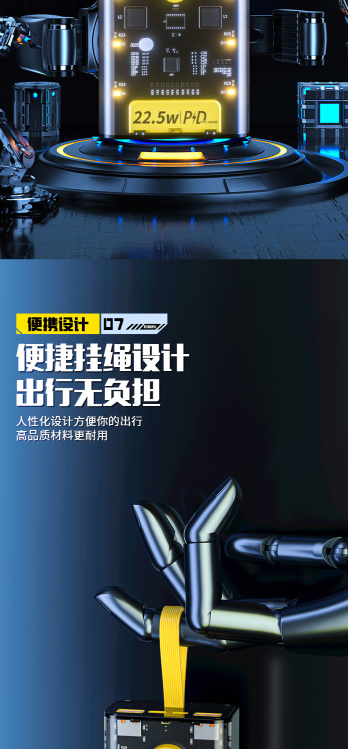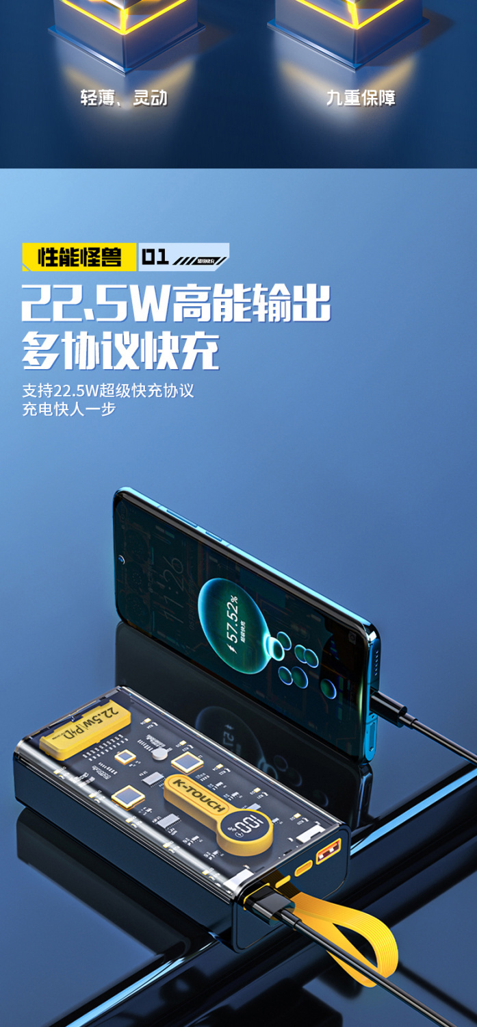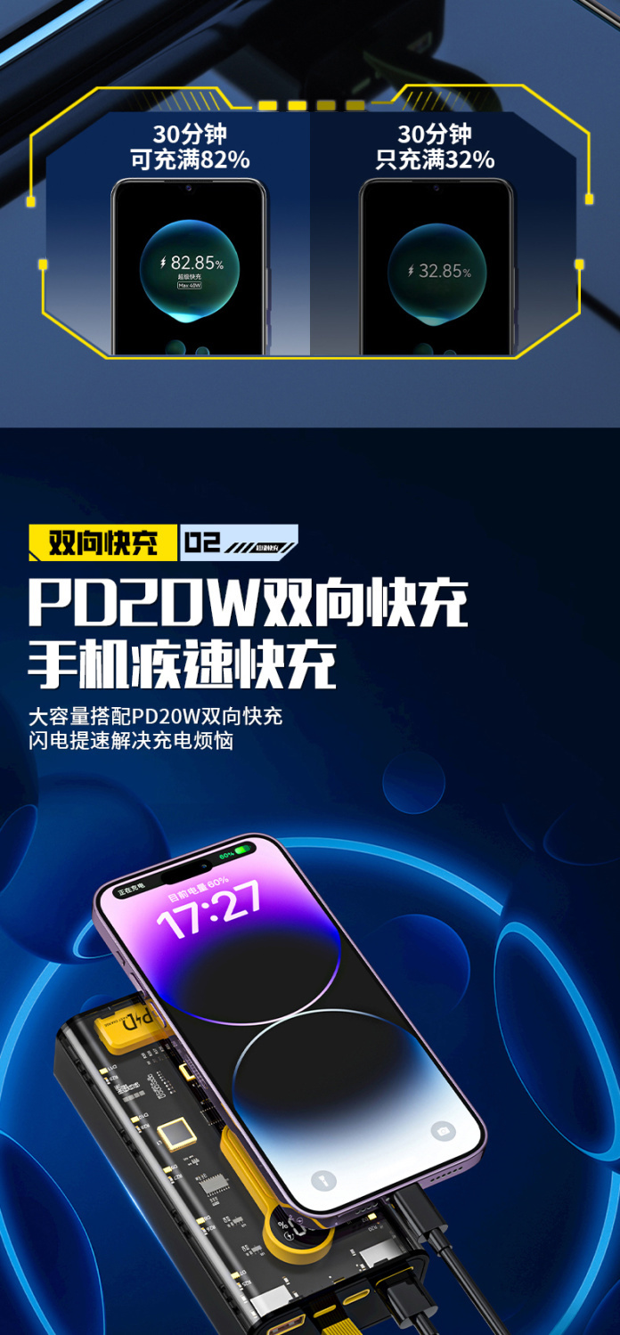 天语透明充电宝20000毫安22.5W超级快充大容量耐用便携移动电源