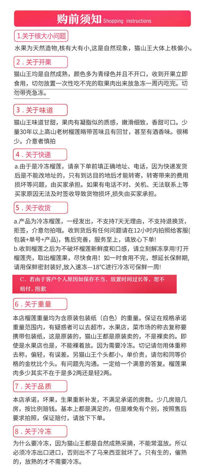 猫山王榴莲D197新鲜马来西亚进口水果液氮冷冻带壳保鲜一整个包邮
